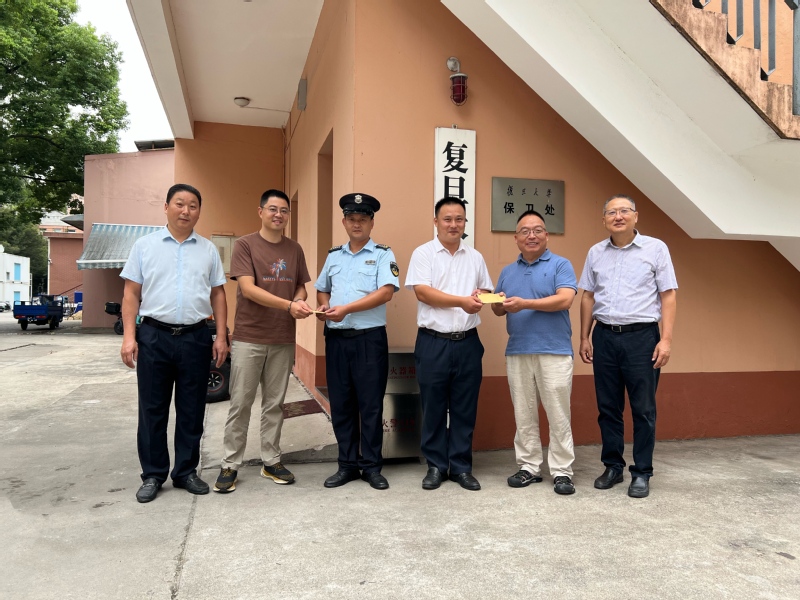 9月18日,枫林校区管委会、保卫处相关领导同志现场慰问安保队长郭礼见和队员袁超,并送去奖励。